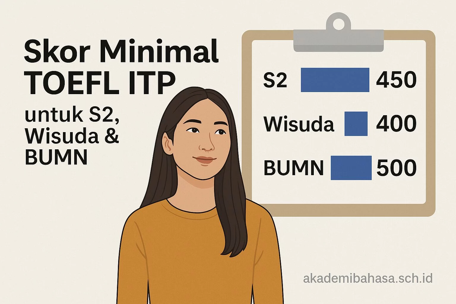 Akademi Bahasa Asing (ABA) sebagai lembaga penyelenggara TOEFL ITP Online resmi ETS di Indonesia membantu peserta memahami standar skor dan pemanfaatannya untuk kebutuhan akademik maupun profesional. Artikel ini membahas skor minimal TOEFL ITP yang umumnya disyaratkan untuk kelulusan universitas, pendaftaran program pascasarjana (S2/S3), serta proses rekrutmen di lembaga pemerintah dan BUMN.