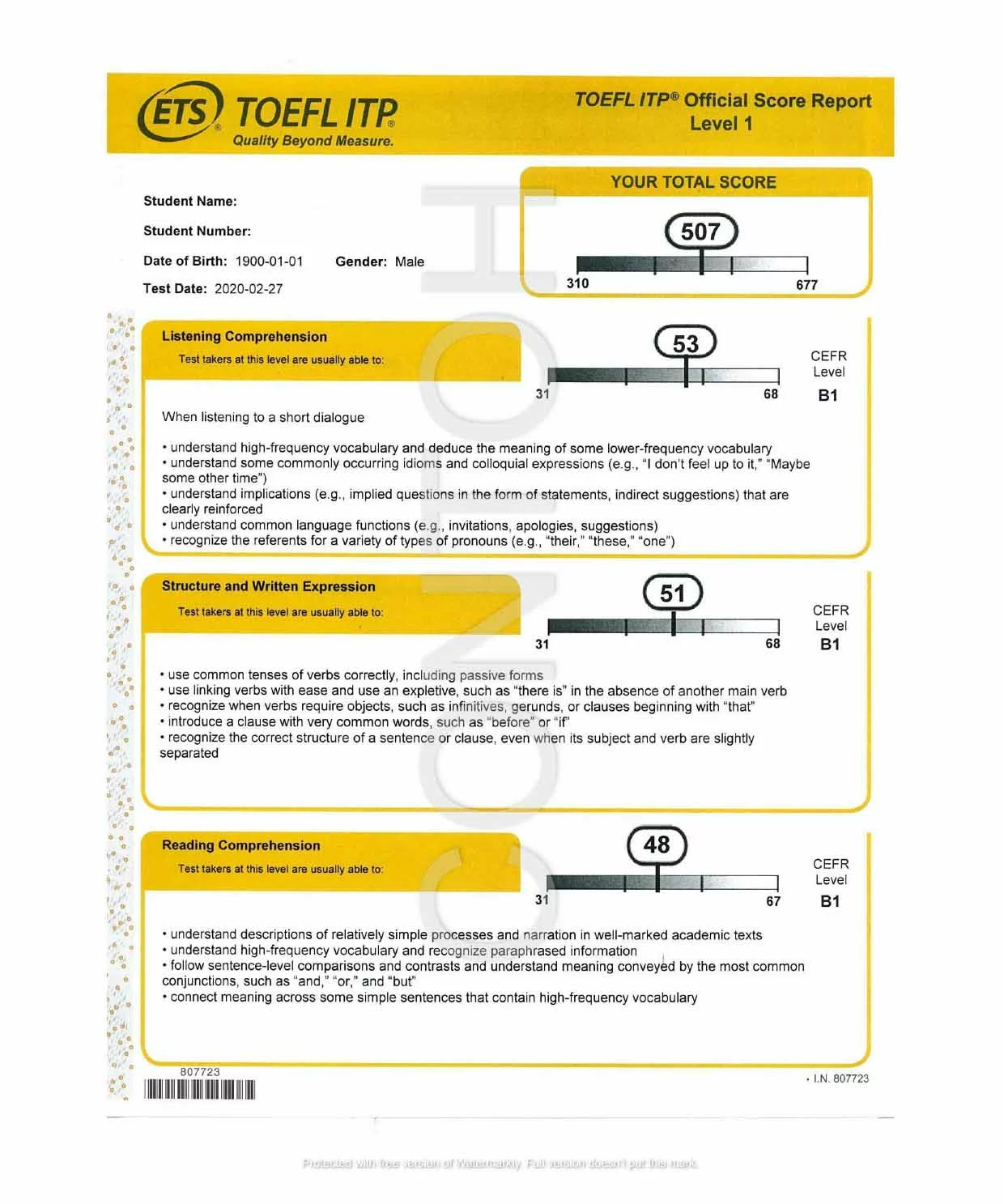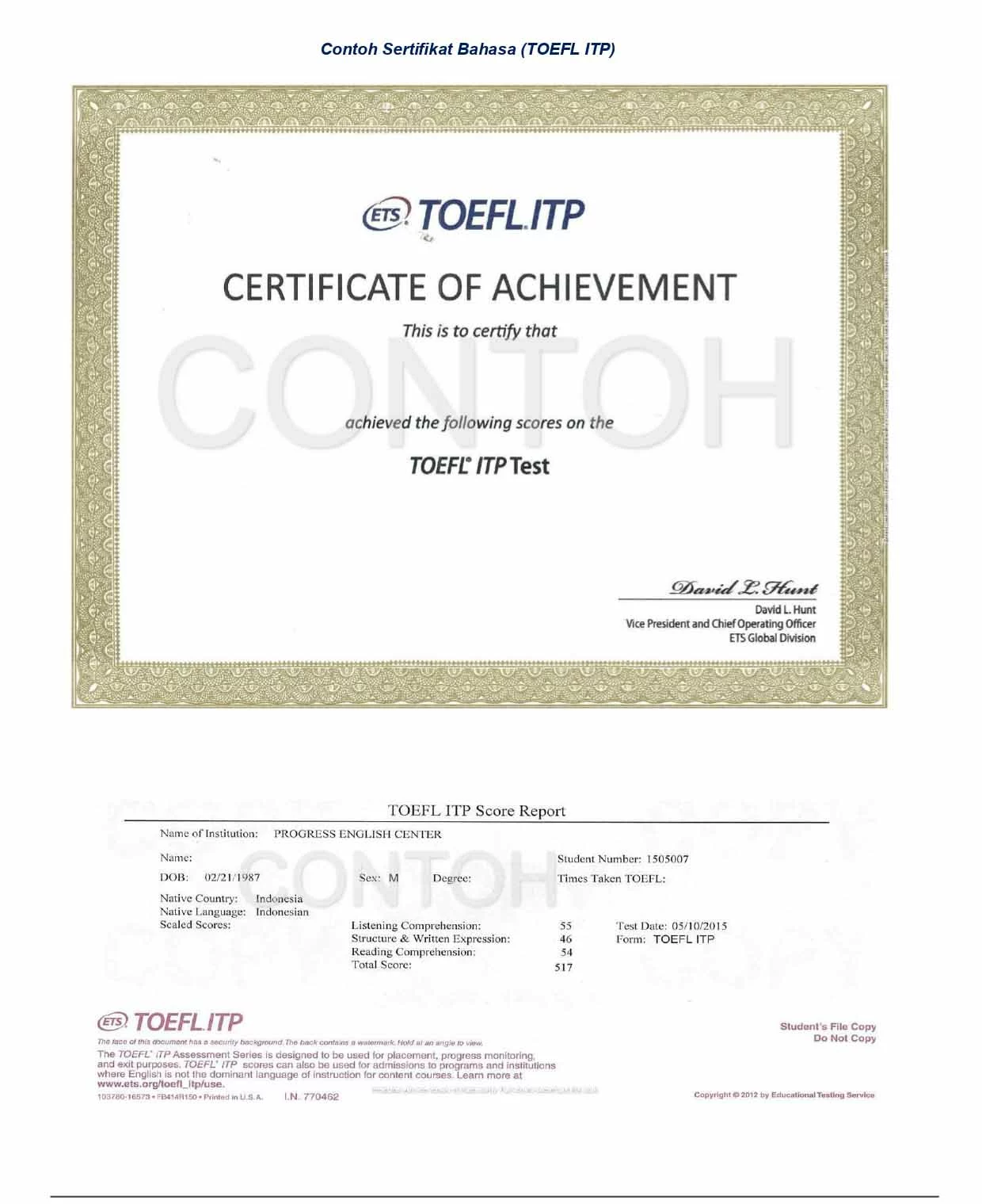 Contoh Sertifikat & Score Report TOEFL ITP Resmi ETS